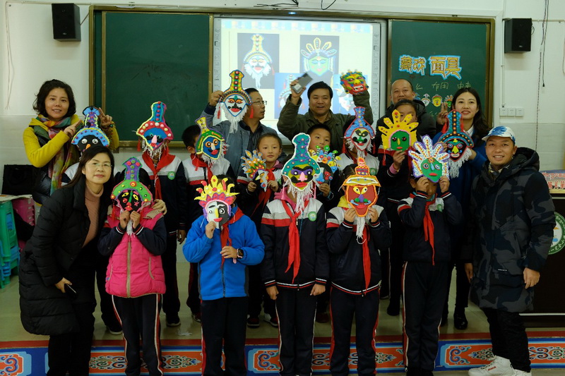 王老师选择了当地孩子们熟悉的藏戏面具,并结合我校的超轻黏土,让孩子们设计制作了一个造型独特、风格别致的面具。