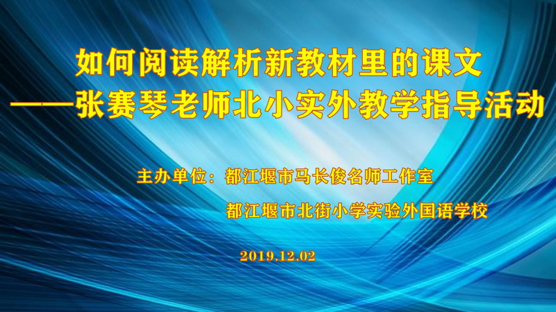 2019年12月2日,都江堰市名师工作室马长俊工作室和我校邀请到著名特级教师、国培专家张赛琴老师,都江堰教研室宋桂芳老师、教研室任小英老师开展了“如何阅读解析新教材里的课文”主题研讨活动。本次会议得到了教研室、教师进修学校的大力支持,全市小学共有120多人参加了此次会议。