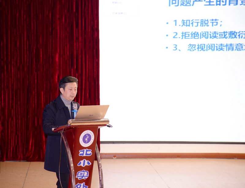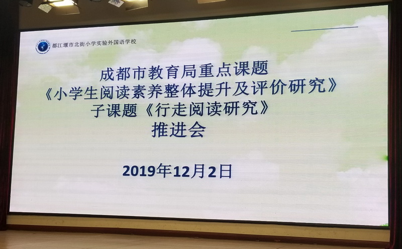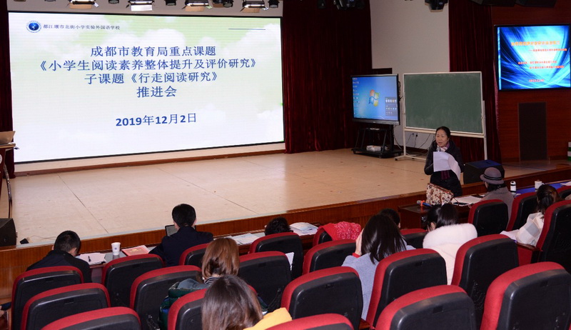 马校长就我工作室课题《小学生阅读素养整体提升及评价研究》下的子课题《行走阅读》的推进汇报。