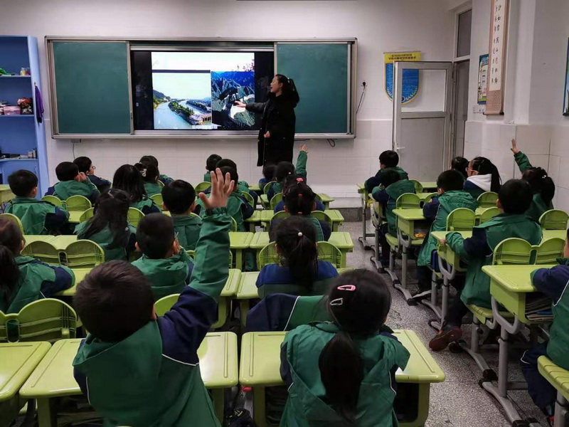 Class 4 grade 4,Zhang Siqi's father, told the old irrigation story to the children in the scenic area. The children listened with great interest.