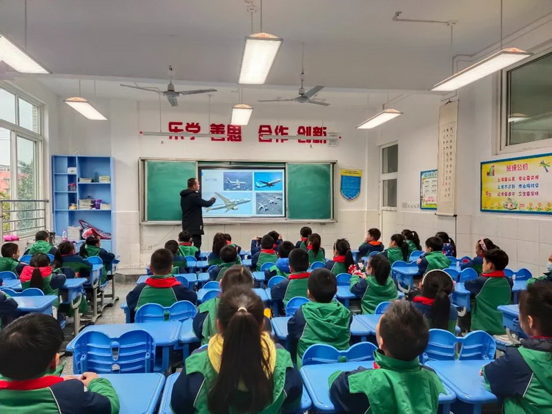 Wen Zixi's father explained the knowledge about the plane to the children with the image pictures, and the children benefited a lot.
