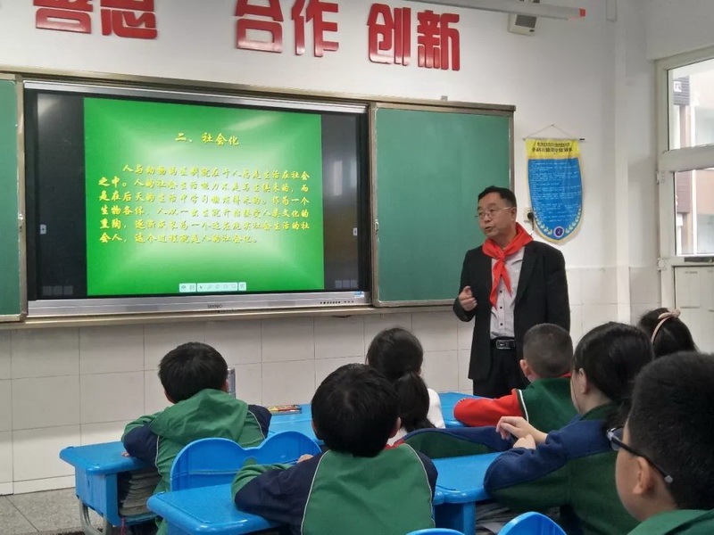 Class 1 grade 5,Luo Weixi's mother invited her relative, Meng Jie, a teacher from Inner Mongolia Youth Working Committee, to give children a lecture on sociology.