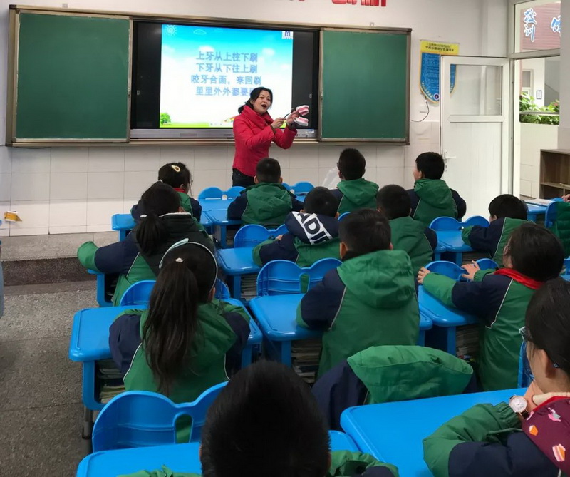 Class 2 grade 5,Chen Zhiyan's mother brought children oral health knowledge.