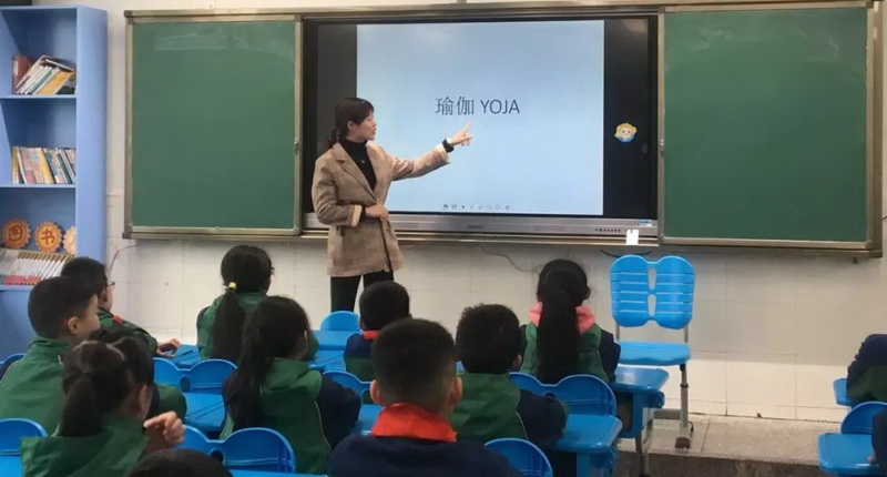 Class 5 grade 5,Liang Peixin’s mother brings yoga class.