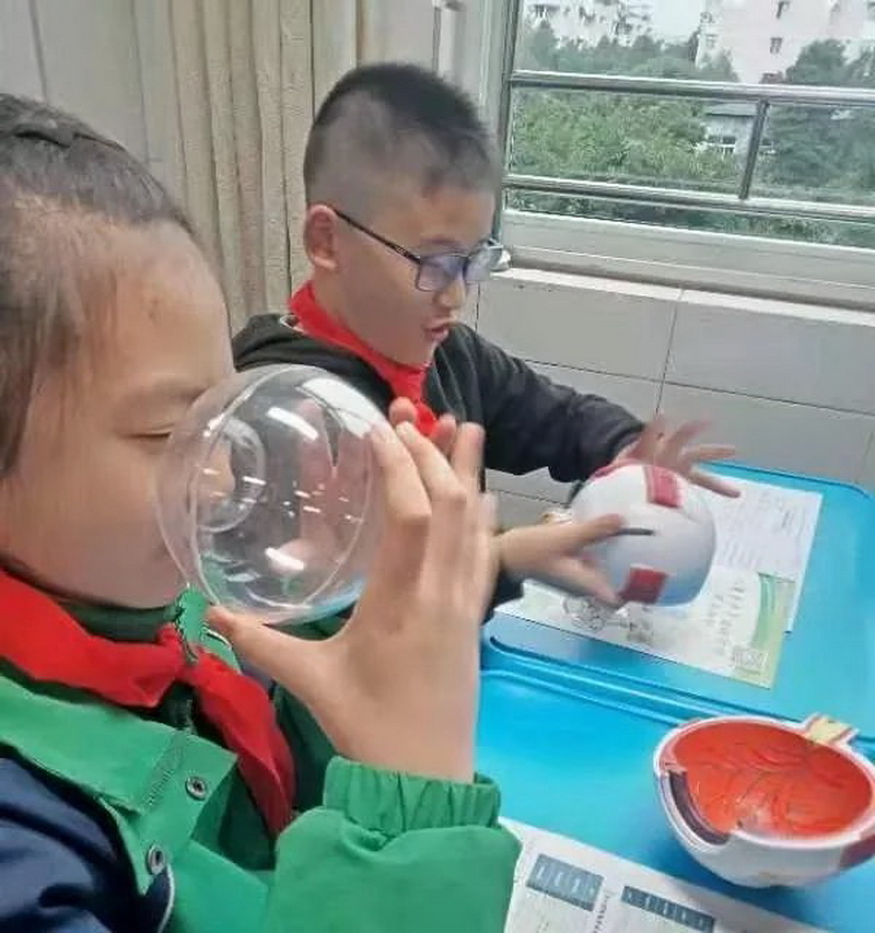 Class 4 grade 6,Li Wenping's mother led the children to explore the causes of myopia, and taught them health and eye care tips.