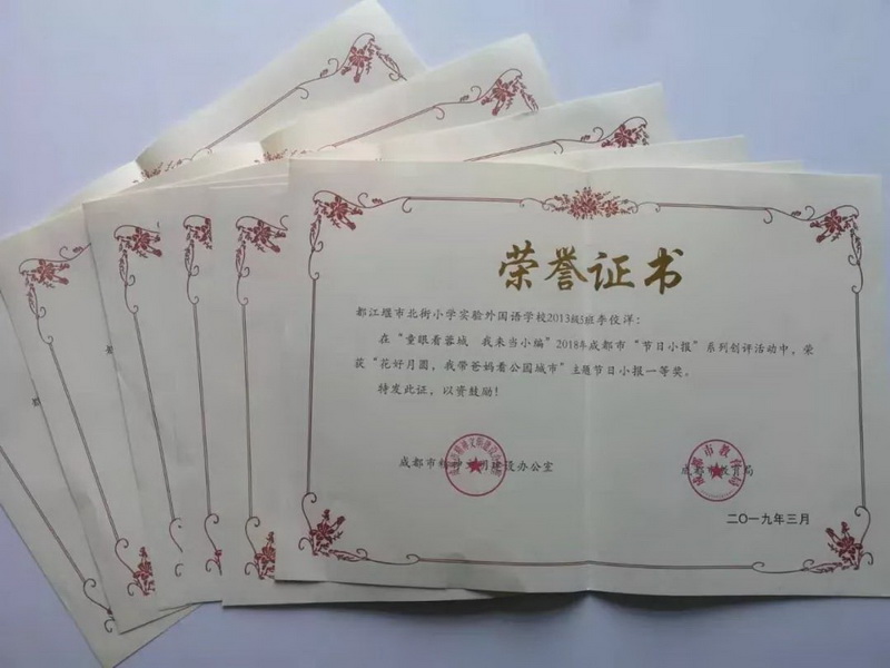 Our school "Tongsheng Feiyang chorus and creative clay club" were rated as excellent clubs of primary and secondary schools in Chengdu in 2019.