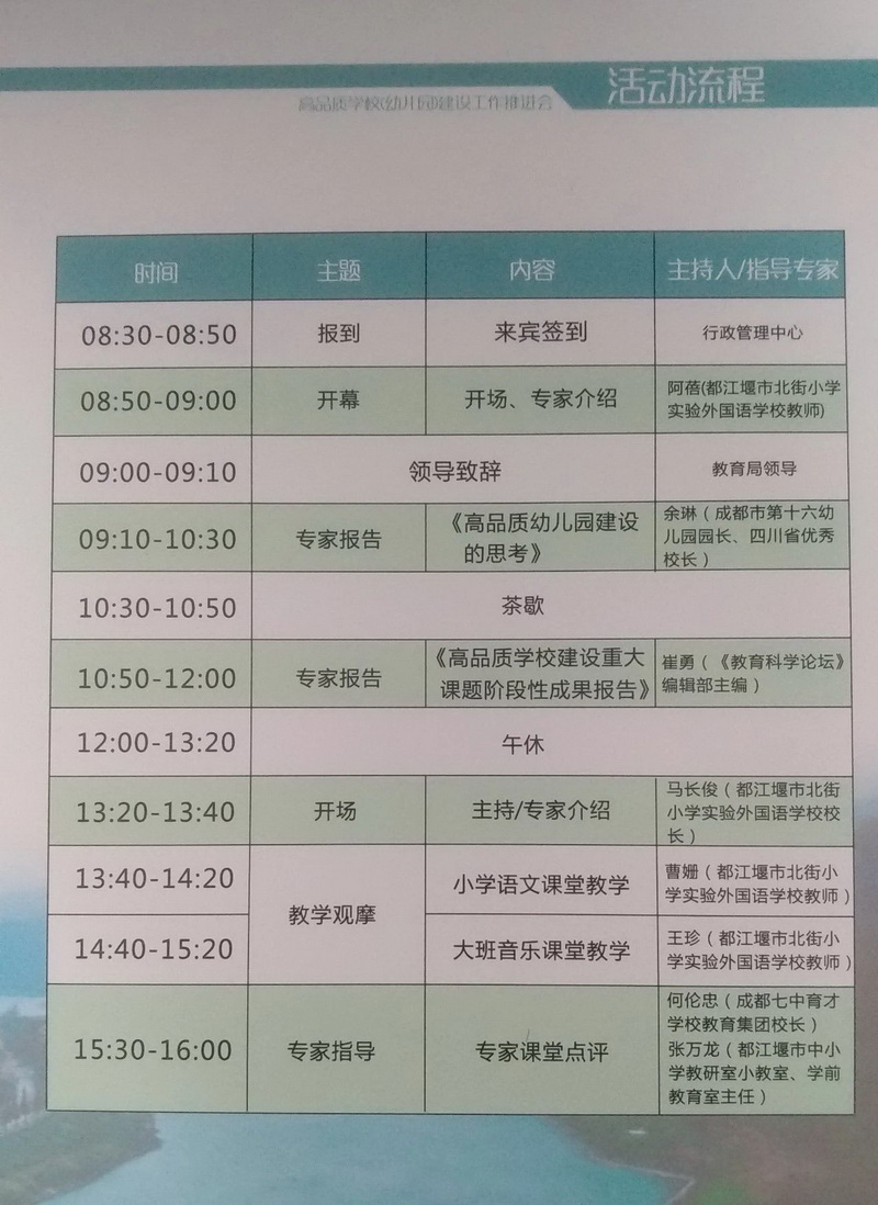 In order to respond to the two conferences, our school, as a sub project unit of "Exploration and practice of high quality school construction" in Sichuan Province and a deep school project school in Dujiangyan national basic education curriculum reform experimental area, held the project promotion meeting of "construction of high quality school" in Sichuan Province, followed by the opening meeting of Dujiangyan national curriculum reform experimental area In the spirit of discussion, Dujiangyan primary and secondary education research office and our school held a seminar on the construction of Dujiangyan high quality schools (kindergartens) on December 26.