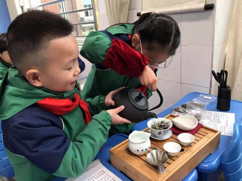 2.6木子妈妈带我们走进了茶文化,介绍了茶的起源,茶的种类,茶具,冲泡功夫茶的流程等,孩子们自己动手学着泡了一杯感恩茶,感恩爸爸,妈妈,老师……