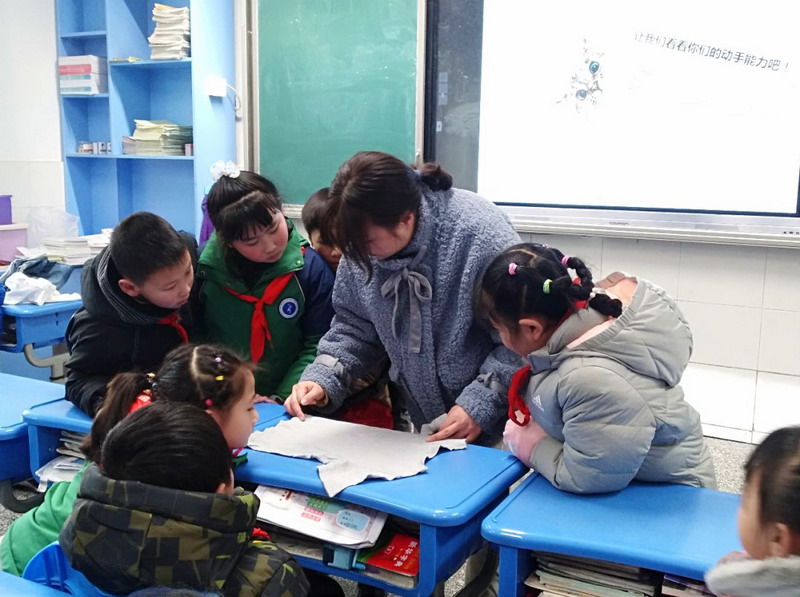 Parentof class5 grade4 took children cut out the taste of Spring Festival with theirhands.