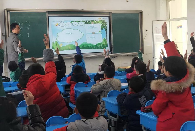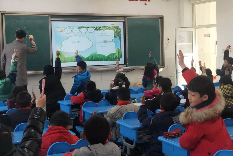 Jiang'sfather from class5 grade3 used courseware to explain the origin of stationery,and used text stories and video to lead children to love stationery.