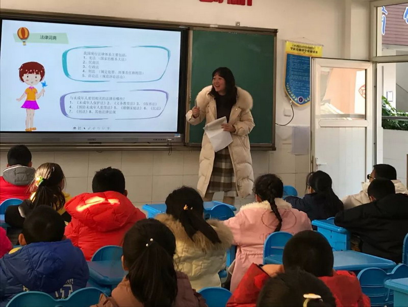 LinNanzhi's mother from class2 grade5 brought the law into the classroom. Thechildren listened with interest and enriched their legal knowledge.