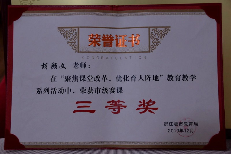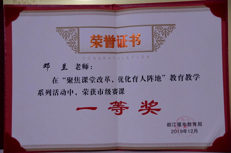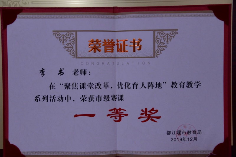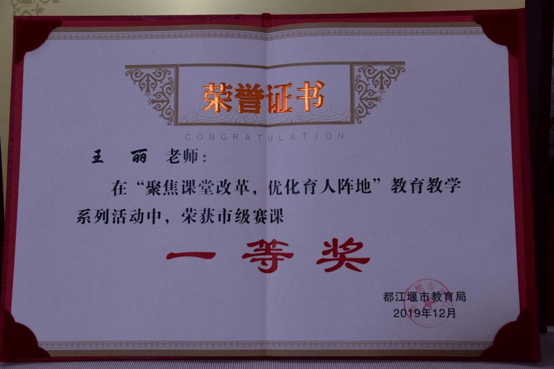 Teachers of our school have achieved good results in the series of education and teaching activities of “focusing on classroom reform and optimizing education positions” carried out by Dujiangyan Education Bureau.