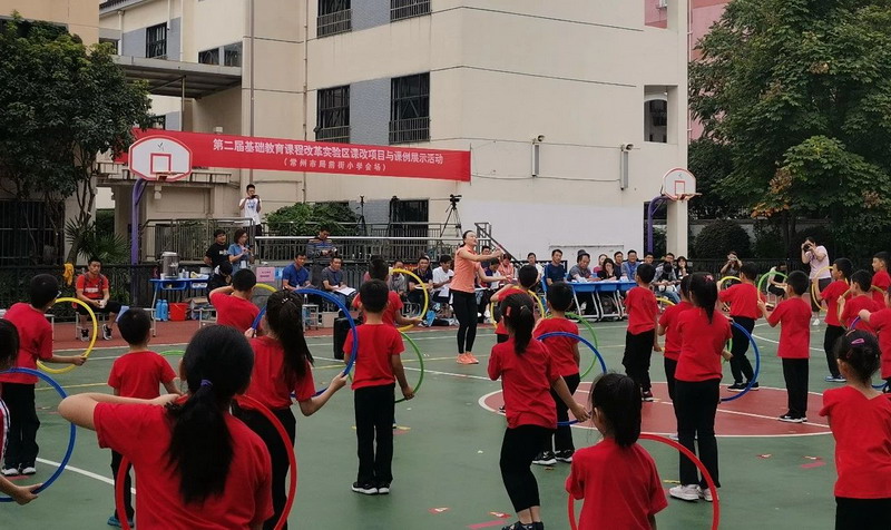 邓兰老师:代表都江堰市实验区参加在江苏常州举行的,“教育部基础教育课程教材发展中心”的小学体育与健康课程现场课例展示,上课内容《跳跃与游戏》,获得表彰。 Deng Lan,"Ministry ofeducation basic education course textbook development center" of primary school physical education and health course on-site lesson demonstration, thecontent of the lesson "jump and game", was awarded.