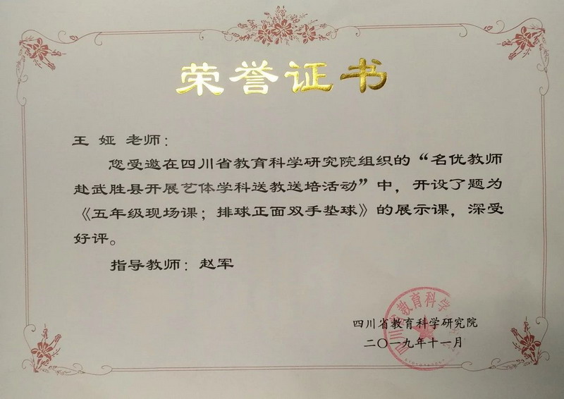 Wang Ya: The invitation from Sichuan Academy of education and science, she went to wusheng County, Guang'anfor a course. The course "volleyball with both hands in front" washighly praised.