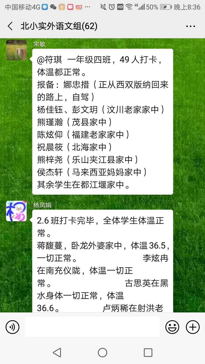 学校认真落实上级各部门精神,根据我校实际情况积极组织各班班主任收集全校学生外出旅行及接触湖北相关人员名单,做好登记及回访,通过校园平台追踪教职员工、家长、学生每日健康情况,切实保障我校公共卫生安全,完成校园人防、物防、技防工作。