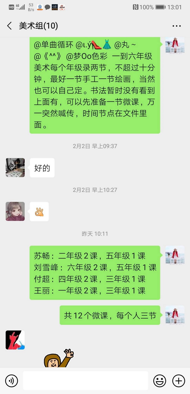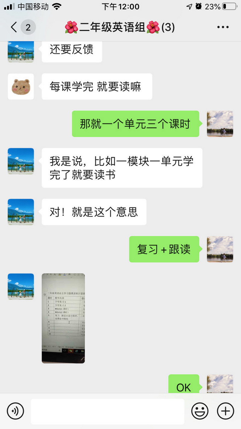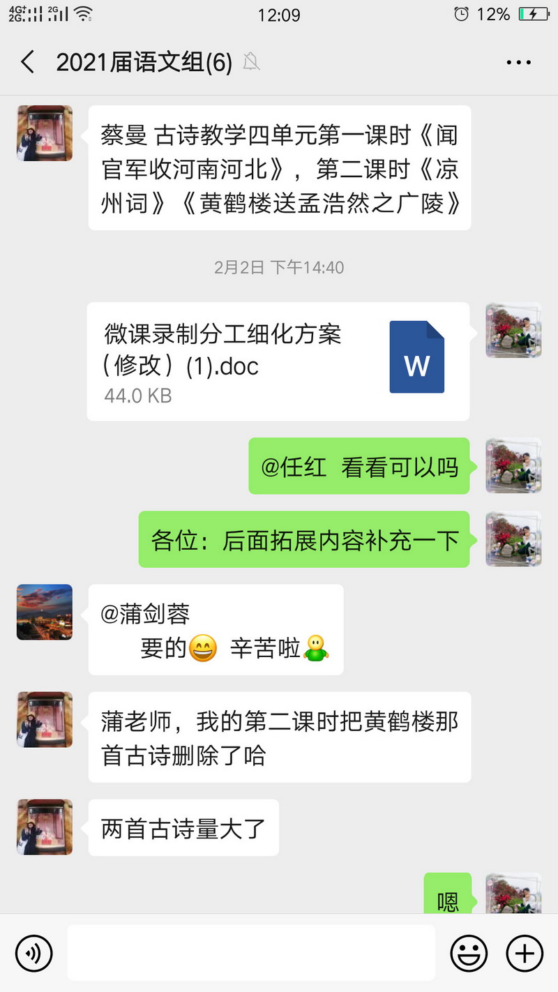 学科大组根据学校课程中心安排,组织本组教师通过微信进行网络教研,选择各年级各学科适宜远程教学的知识点,做好细致分工安排。