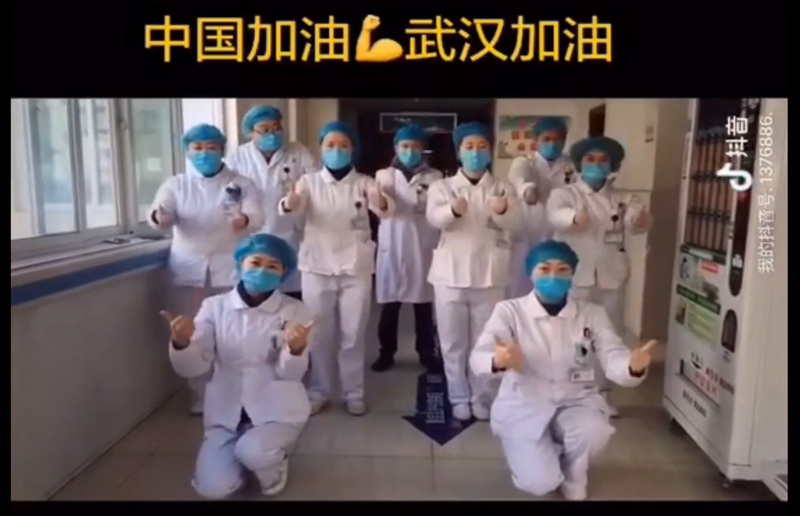 周锦锋的妈妈就职于地矿局四〇五医院外二科,大年初二接到命令取消休假,初三正式上班。她克服困难始终坚守自己的岗位,尽心尽力工作。在忙碌的工作之余,他们拍下了此段视频,为自己加油!为武汉加油!为中国加油!