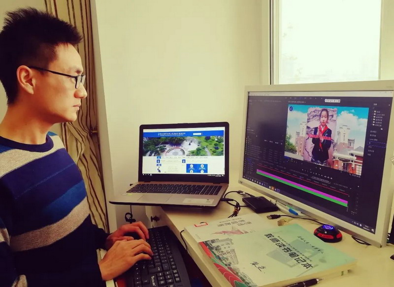 陈贤老师是我校信息技术老师。疫情发生后,学校延期开学,许多工作都得在线上进行,各种会议召开,线上答疑,微课制作等等都落在陈老师身上。他搭建网络平台,积极推进学校教职工线上工作和学生线上学习。为了保证全校教职工和家长顺利进行网络视频会议,陈老师先熟悉“会易通”网络会议软件,制作软件使用操作微视频,组织各种管理网络会议的开展。他积极搭建教育网络视频会议系统,使学校与都江堰市上级教育部门顺利进行视频会议,更迅速地获取上级部门对于学校的工作指示。延期开学自主学习之前,陈老师指导全校老师制作微课,并指导和帮助老师对“晓黑板”软件的使用。陈老师的心声:“比起在疫情一线奋战的医生、护士和其他工作人员,我们所做的这些都是微小的事情。大家一起加油!”