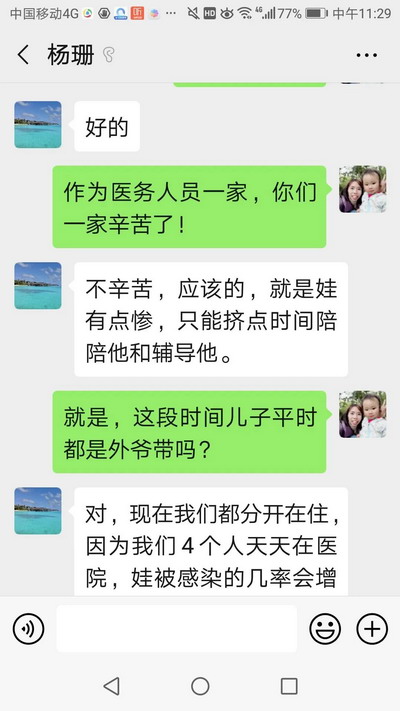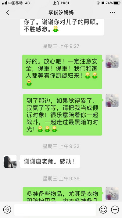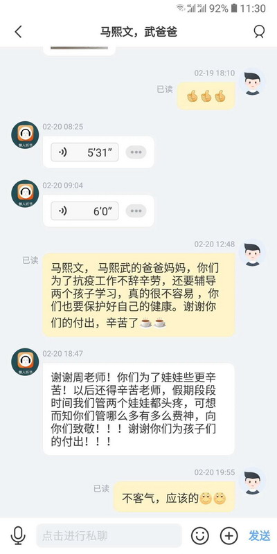 According to the principle of "one-to-one", our school organizes teachers to pair up with children of the anti-epidemic staff .The volunteers communicate with the children and their stay-at-homefamilies in various forms such as telephone communication, video connection and Internet communication, so as to guide their study and life at home.