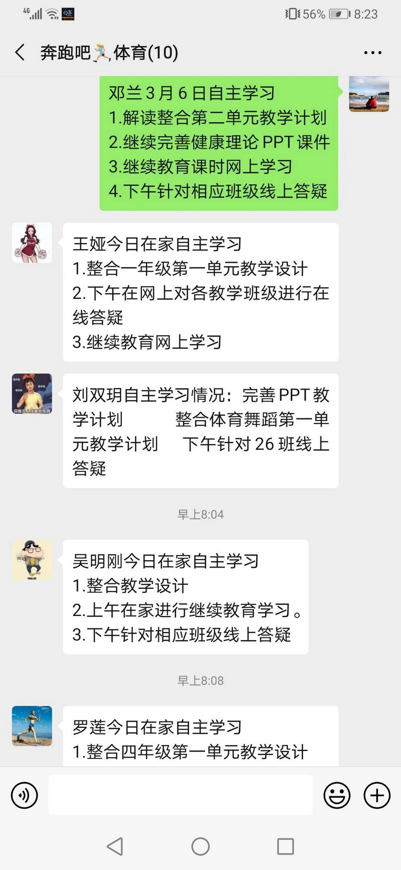 体育组:解读并整合各年级第一单元教学计划,围绕学生常规体育课的开展形式多样性进行讨论,为复课后的阳光体育锻炼内容分学段进行整理完善。