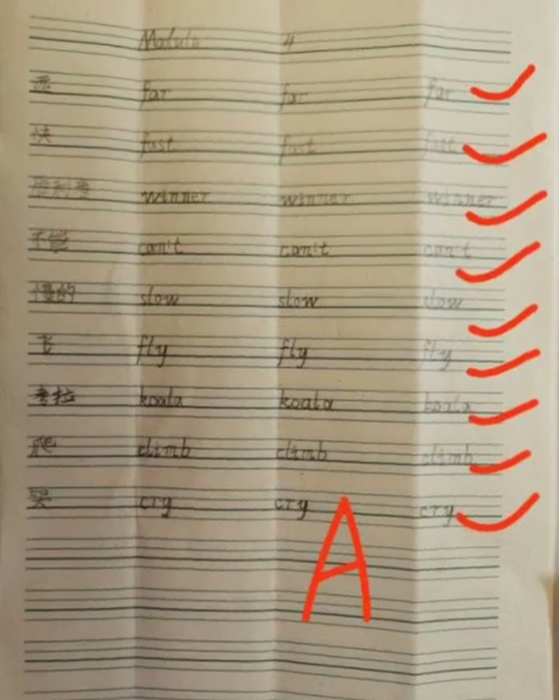 During the study at home, the fifth grade children completed the task of copying sentences and words, with neat and beautiful fonts and neat layout. Children's writing has improved significantly.