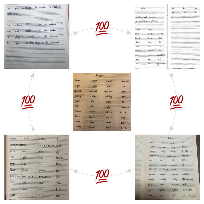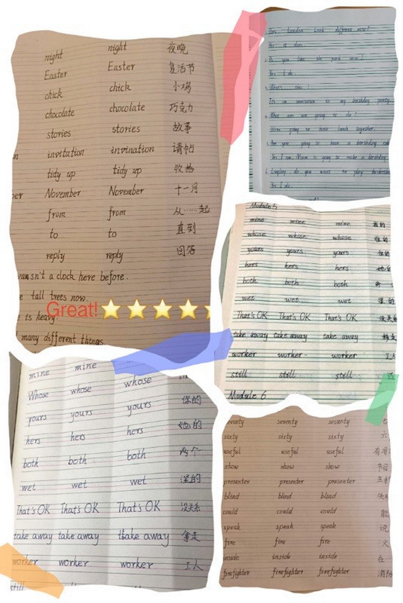 The sixth grade children review English carefully. Their English writing assignments are neat and beautiful. Children also actively memorize words and texts, and share learning methods and experiences. Every honing is to receive intangible wealth. One day, these wealth will make you a strong person.
