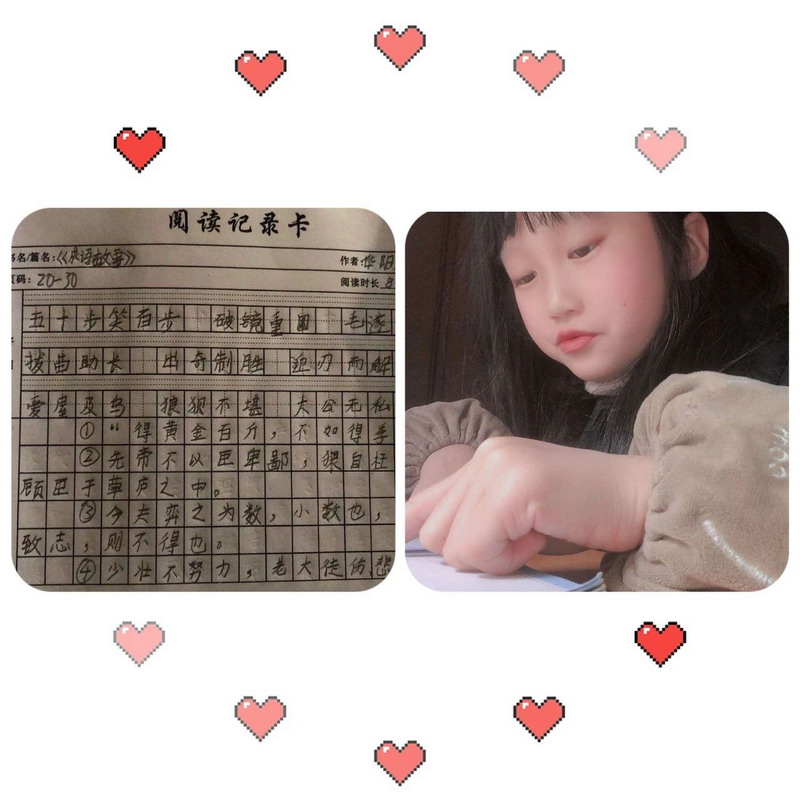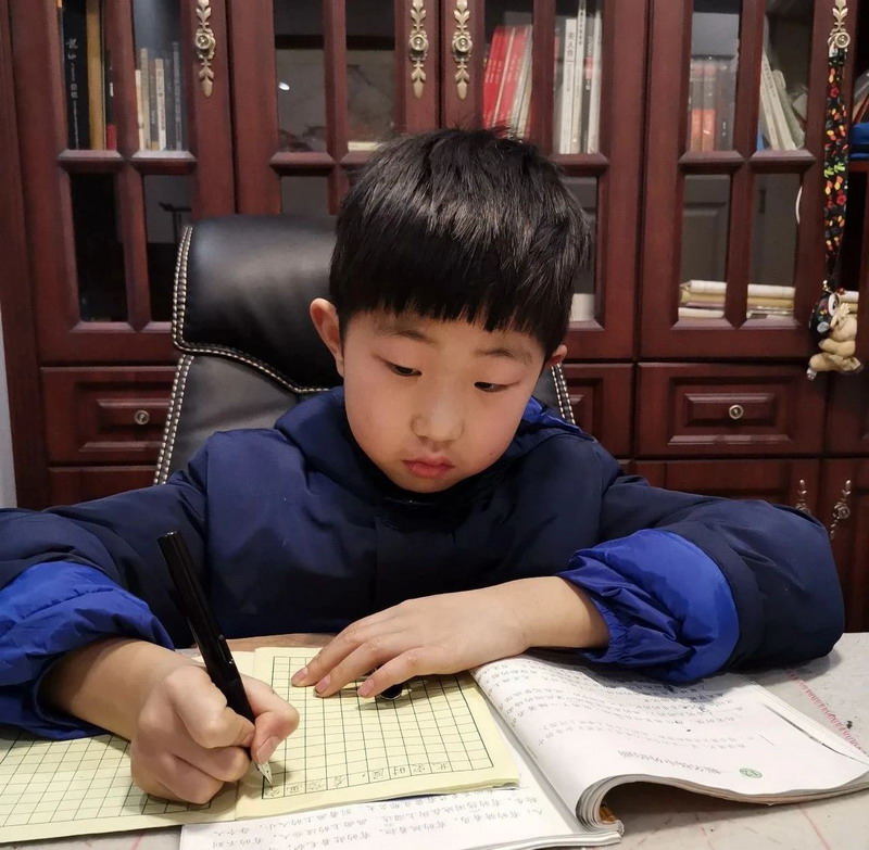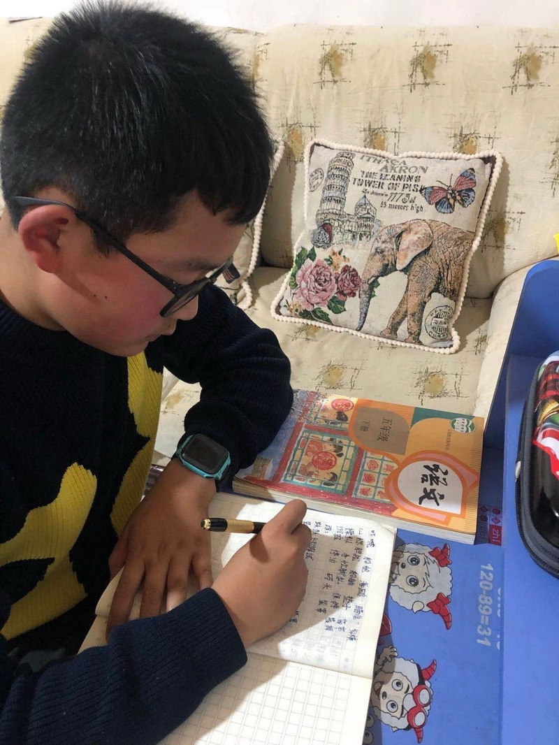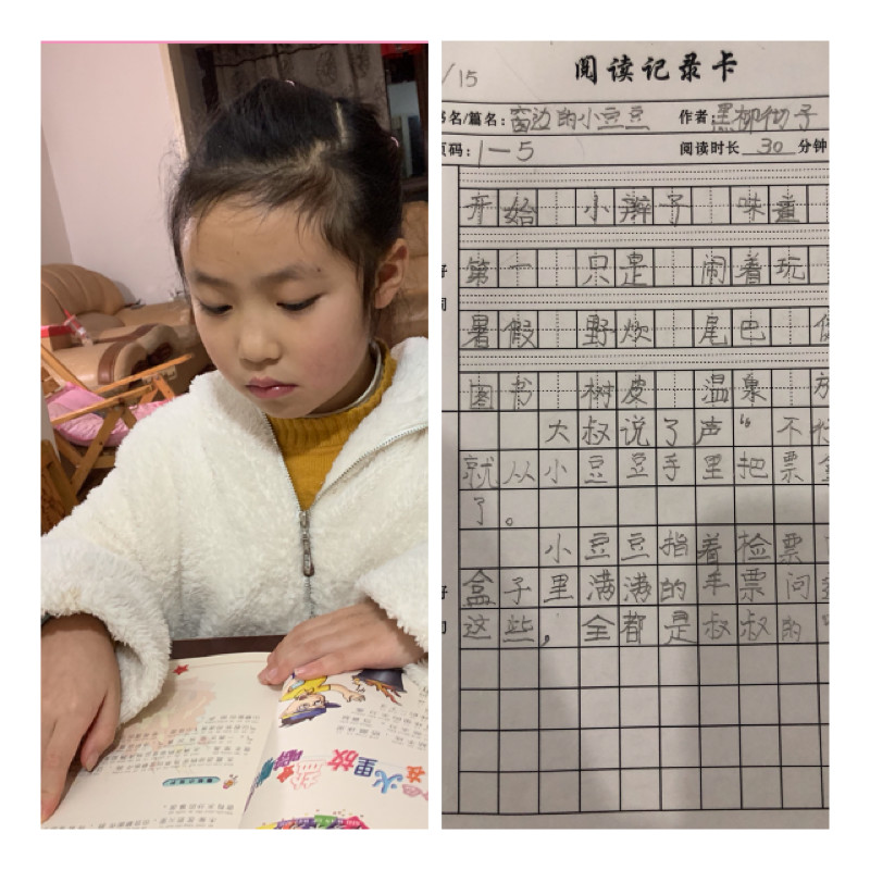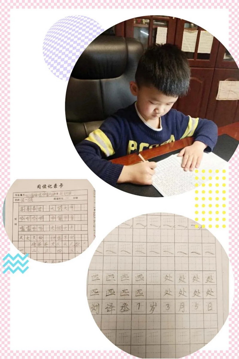 在老师们精心设计的延迟开学自主学习任务卡的指导下,瞧,孩子们专心致志阅读,认认真真书写。