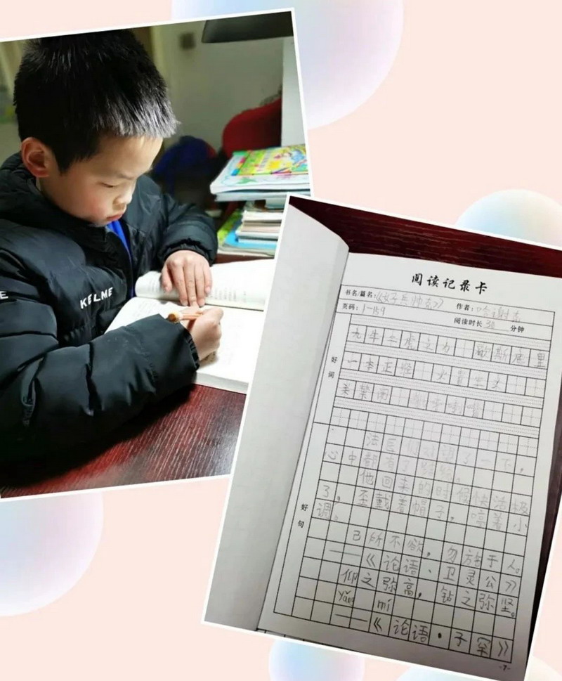 孩子们在家自主阅读老师推荐的好书和自己喜欢的好书。“不动笔墨不读书。”一页页好字,记录精彩;一本本好书,装进心灵!好书,好字,好快乐!