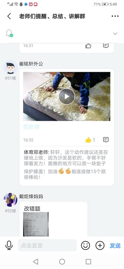 Life goes on, exercise goes on, health comes first! Stop class but don't stop learning, stop class but don't stop education! In order to better serve students, protect their rights and interests, and improve their physical quality during the anti epidemic period; Our school began to use "Xiao heiban" to guide students to complete task cards online for self-study and daily exercise; the teacher of Physical Education Group pushed three sets of physical training videos for children of Grades 1-6; effectively guided and prompted children to actively participate in physical exercise, enhance their physical resistance, and effectively said no to COVID-19!