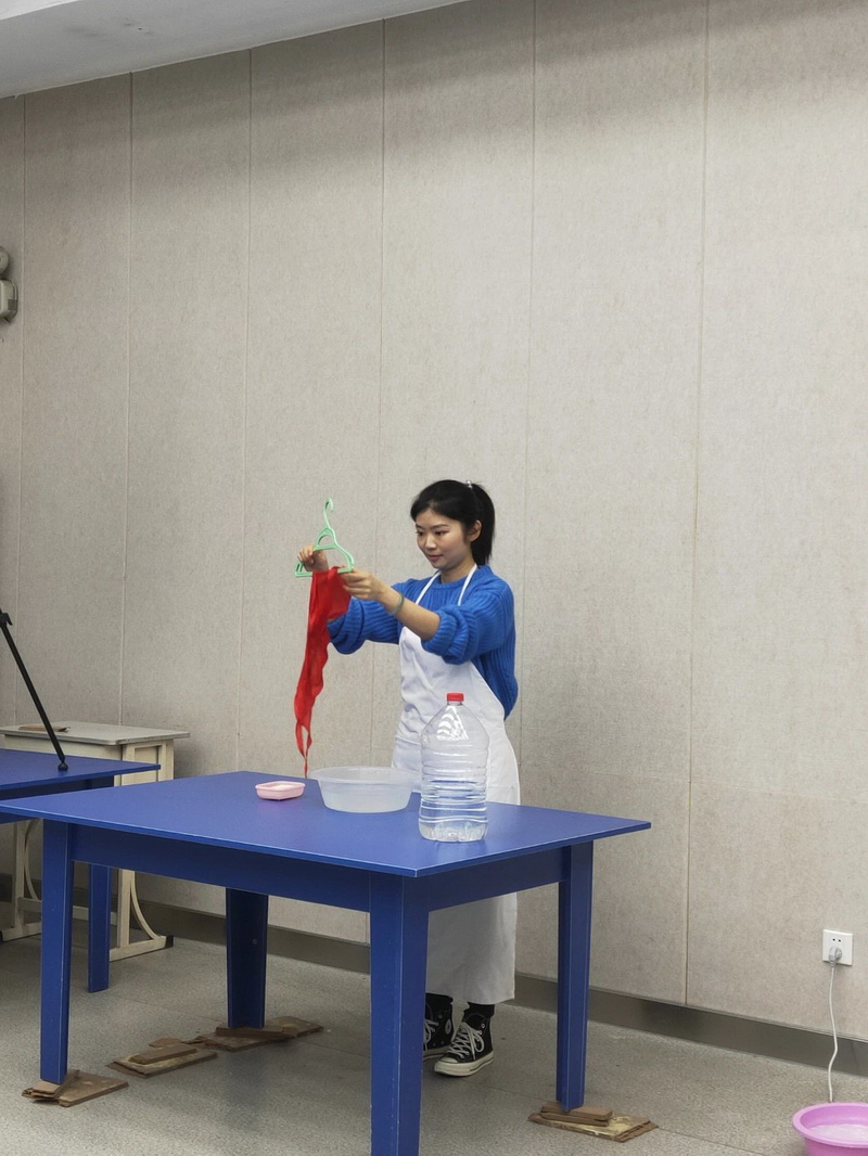 (4)搓洗(温馨提示:搓洗要轻柔,以免破坏红领巾的构成)Scrub (warm tip: scrub gently to avoid damaging the composition of red scarf)