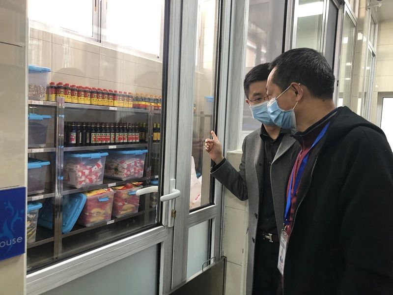 Under the leadership of Ma Changjun, the inspection team conducted in-depth and detailed inspection on the regions and departments involved in accordance with the requirements, and made detailed inquiries on the use of fire facilities, food processing, epidemic prevention materials storage and safeguard measures.