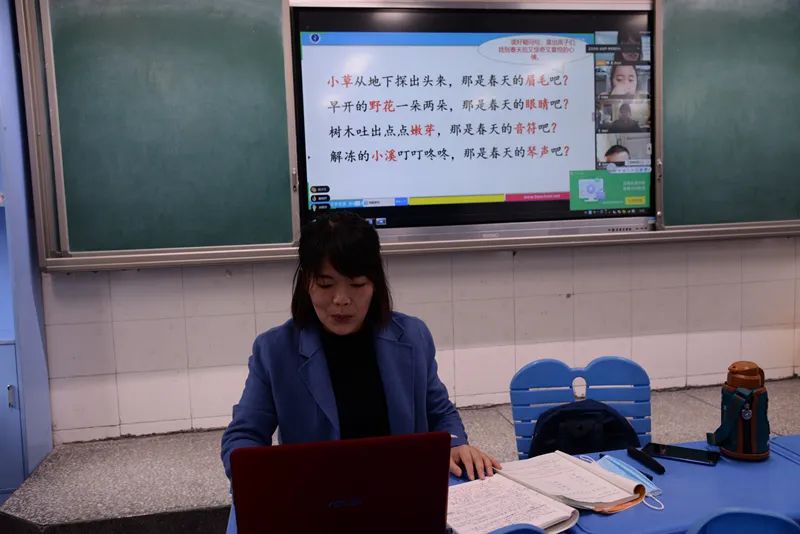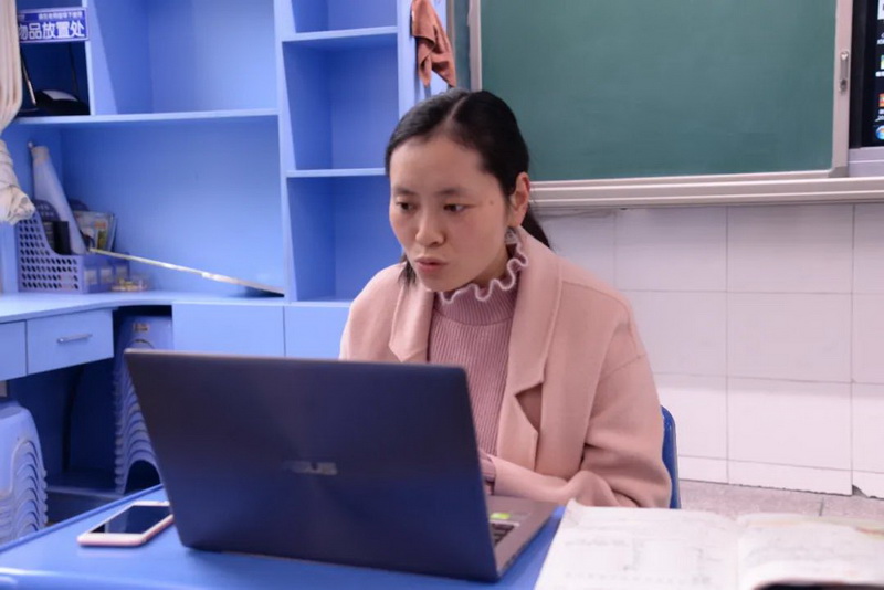 学校给予了完备的后勤保障,一天之内全校35间教室全部添加无线wifi,有线的一体机和无线的笔记本同步使用。老师们摇身一变,个个成一线主播。