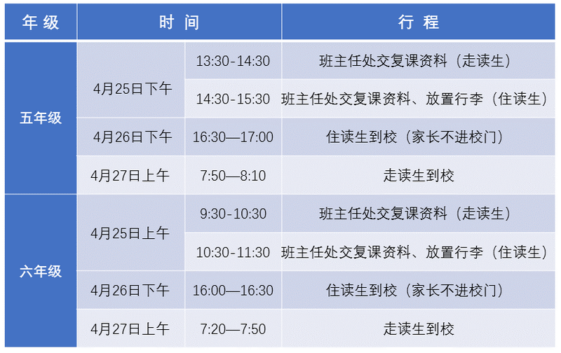 一、复课前时间安排表