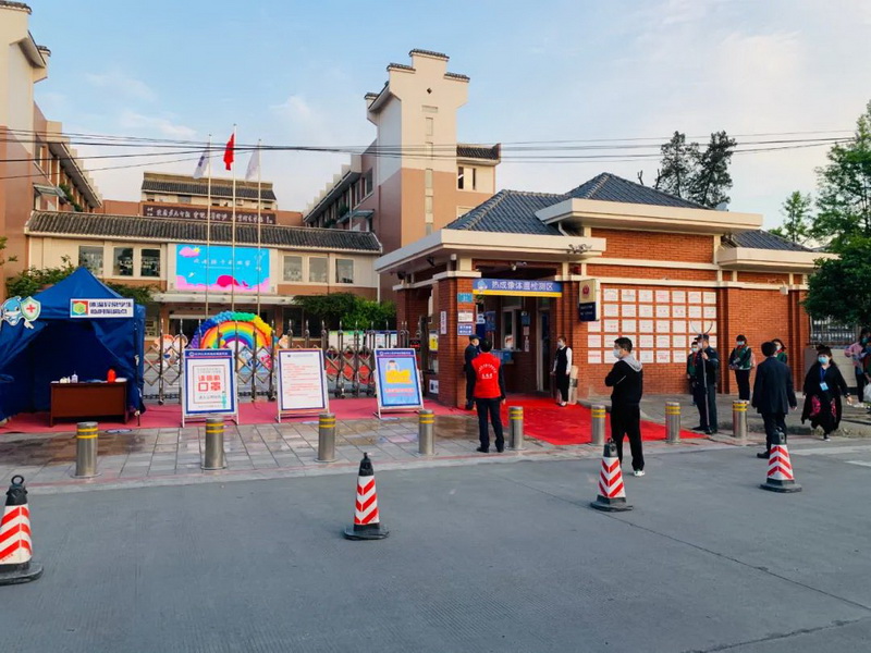 一大早,学校领导、全体老师、工作人员就已经各就各位,早早等候在校门口,为孩子们“保驾护航”,翘首等待孩子们的归来。