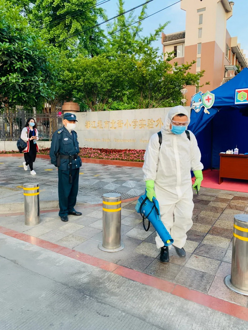 After the evening study, the whole school carries out ultraviolet disinfection to ensure the safety of teachers and students.