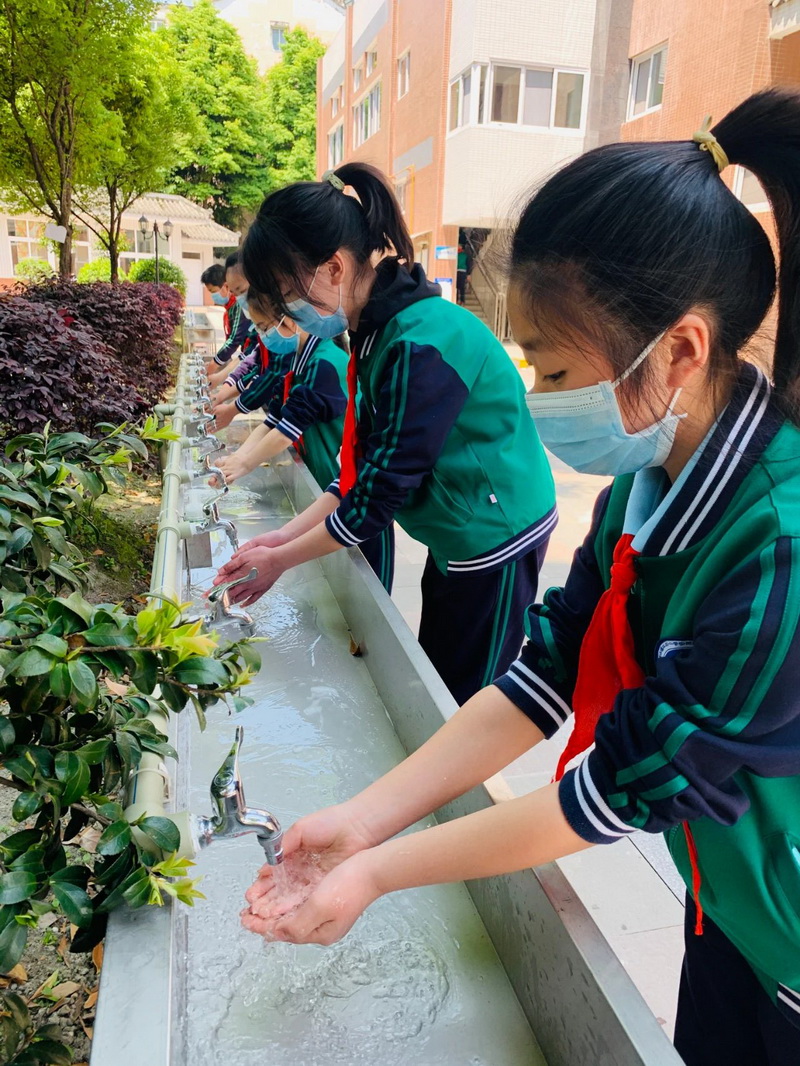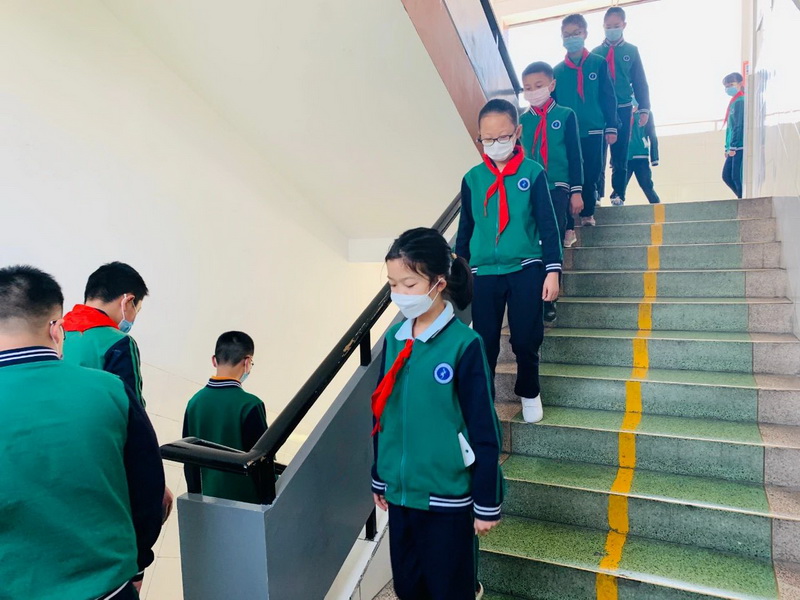 After school, the students in accordance with the student numberqueue, consciously spaced one meter, parents stand outside the school on the two sides of the designated location corresponding to the point, and the children's station one to one. Parents receive their children and leave in anorderly manner.