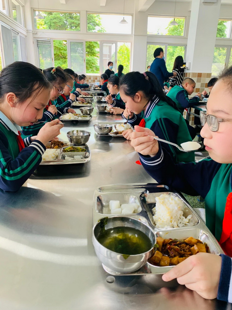 After the class in the morning, under the organization of the head teacher, the students went into the dining room in an orderly manner and disinfected their hands according to the epidemic prevention requirements of the school. The life teacher, the kitchen worker are intimate for the children ,meticulous. Long-lost taste, really sweet!