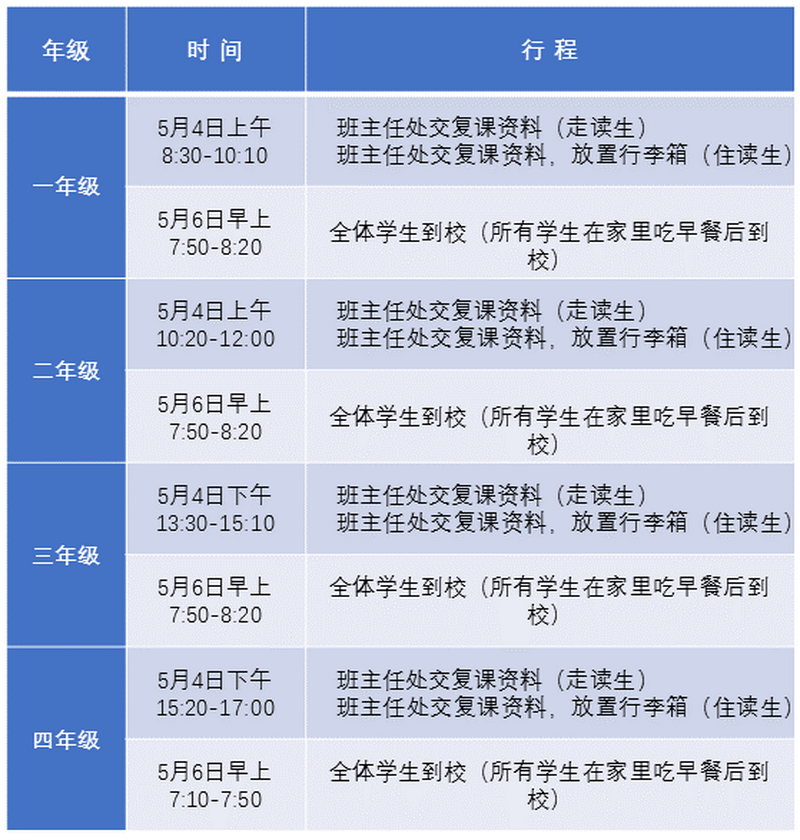 一、复课前时间安排表