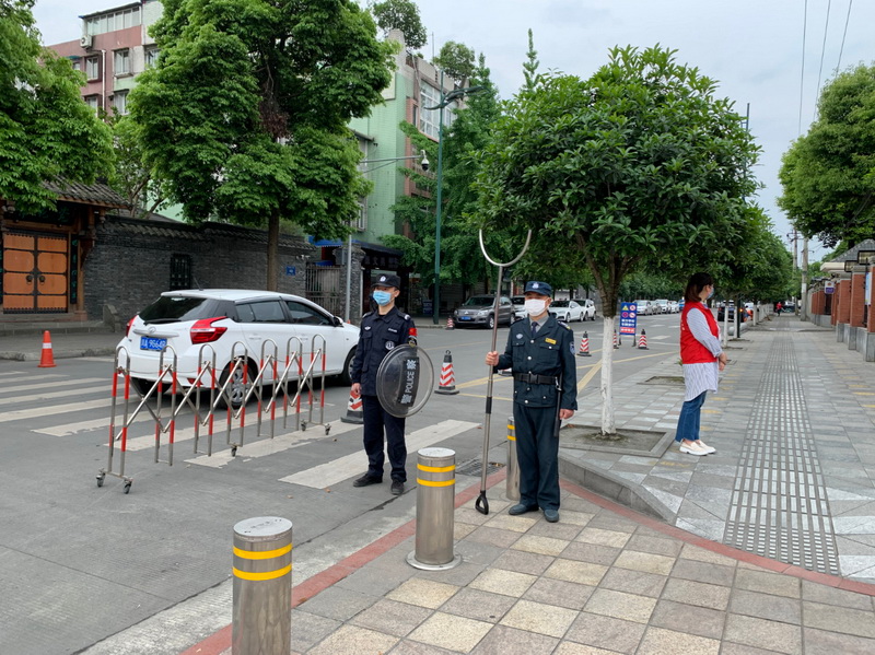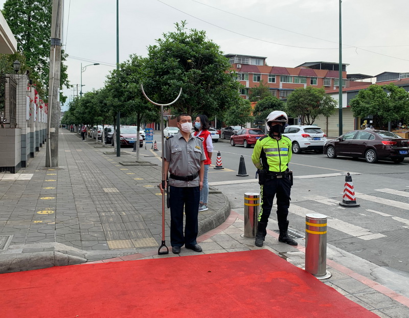 4月28日,都江堰市特警大队李大队,陈警官到我校就学校线下复学后的校门区域安全问题进行现场调研,我校学生发展与指导中心叶主任、安全办公室吴主任进行了接待。On April 28, officers Li and Chen of Dujiangyan special police arrived at our school to conduct on-the-spot investigation on the safety problems in the school gate area after the school resumed offline. Director Ye of our school's student development and guidance center and director Wu of the safety office received them.