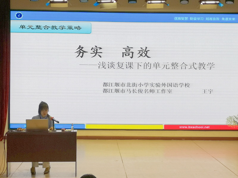 我校王宇老师就“单元整合式教学策略”和老师们做了分享报告。
