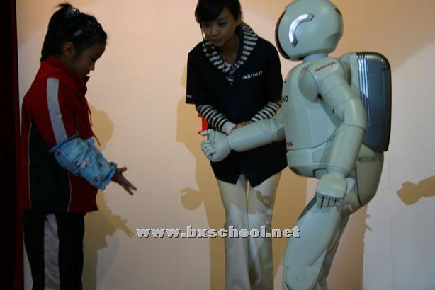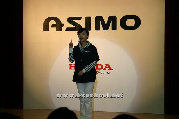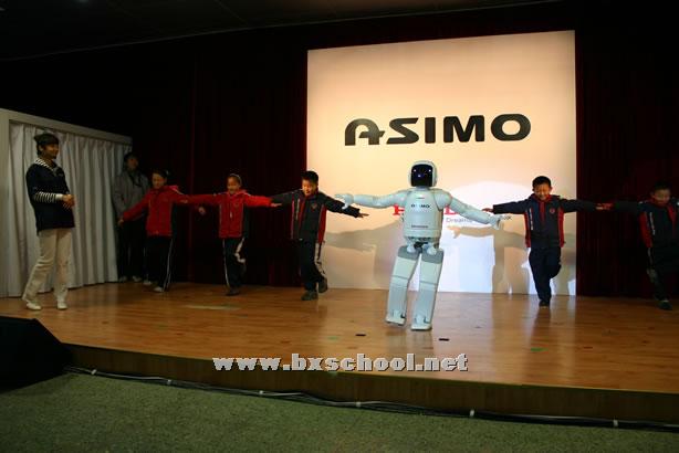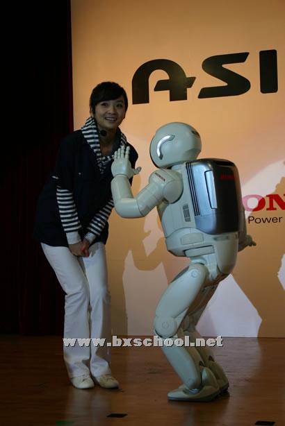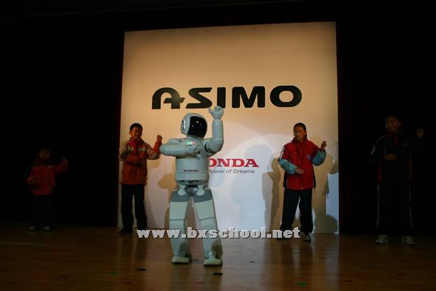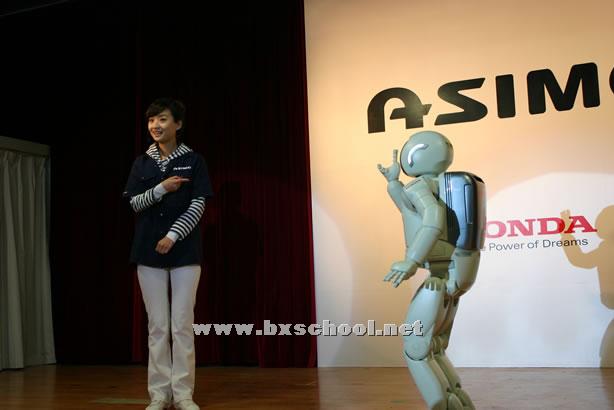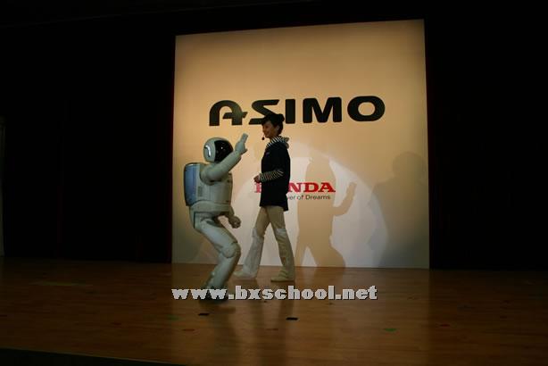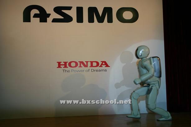 日本本田公司研制的仿人机器人ASIMO,是目前最先进的仿人行走机器人。ASIMO身高1.3米,它的行走速度是0-1.6km/h。早期的机器人如果直线行走时突然转向,必须先停下来,看起来比较笨拙。而ASIMO就灵活得多,它可以实时预测下一个动作并提前改变重心,因此可以行走自如,进行诸如“8”字形行走、下台阶、弯腰等各项“复杂”动作。此外,ASIMO还可以握手、挥手,甚至可以随着音乐翩翩起舞。