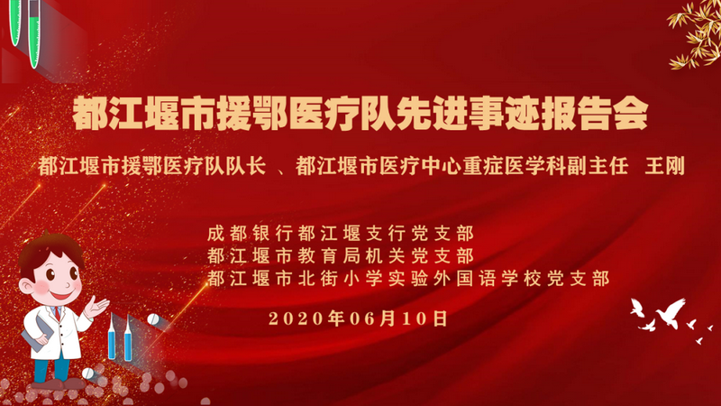 祖国是人民最坚实的依靠,英雄是民族最闪亮的坐标。6月10日上午,都江堰市教育局机关党支部、成都银行都江堰支行党支部与我校党支部共同邀请我市援鄂医疗队队长、都江堰市医疗中心重症医学科王刚副主任为师生、员工作报告,讲述都江堰市援鄂医疗队逆行事迹。
