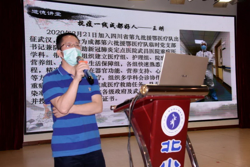 At the report meeting, Wang Gang used simple language and sincere feelings to tell us the story of the medical team members in the anti-epidemic work and the power shown in the anti-epidemic process. The retrograde story is moving; the selfless commitment is admirable.