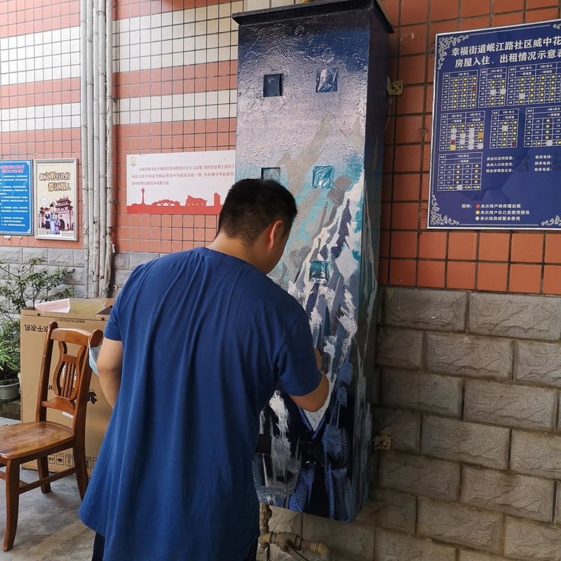 又是一天,烈日当空,我校美术组老师的热情也依旧未减,他们来到了岷江社区威中花园和秀水绿园。用他们充满创作的双手美化社区。
