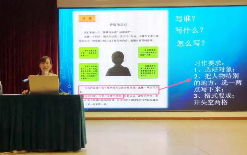 我校吴鸿雁主任为大家带来习作案例分享——《猜猜他是谁》。Wu Hongyan, director of our school, brings a case study of "Guess who he is".
