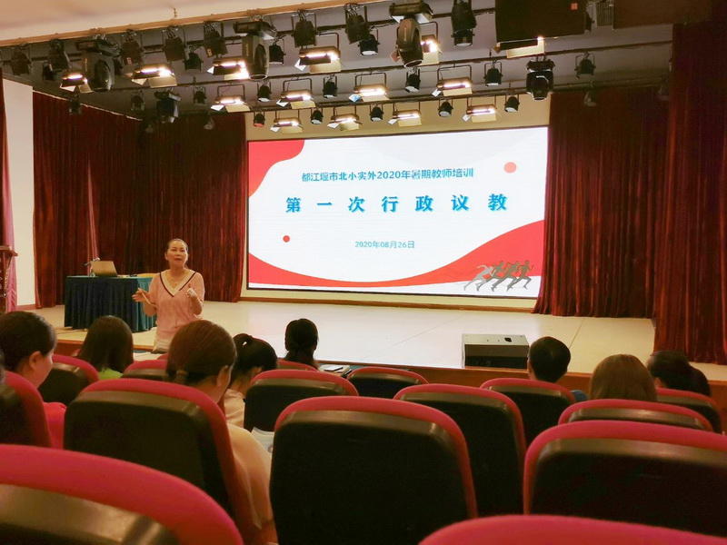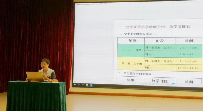 29日中午12:30,全体教职员工在学术厅出席会议,叶体平主任就新学期人事安排、防疫安全细则、各年级上下学时段划分以及餐厅就餐注意事项等方面进行了整体布置与责任分工,将“全员育人、全程育人”贯穿始终。