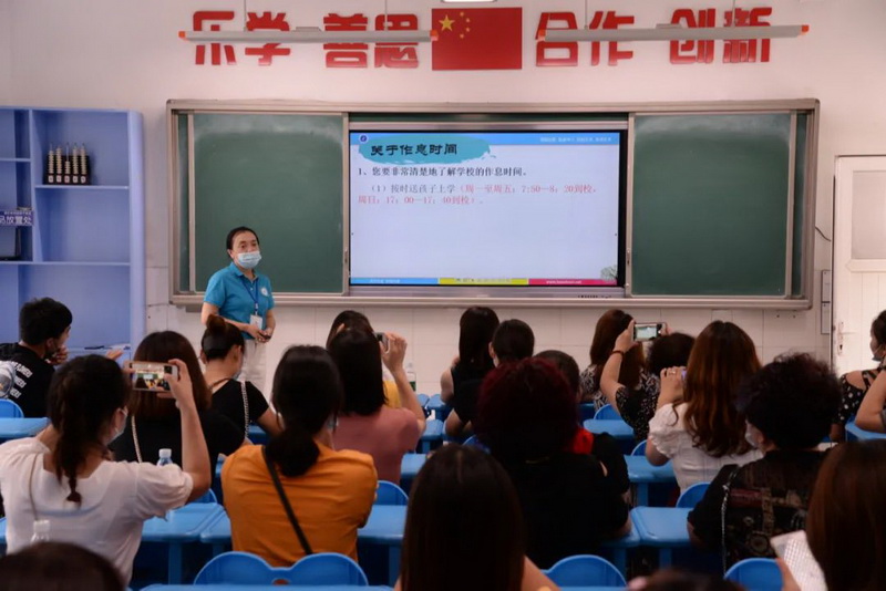 紧张的摇号分班现场会结束后,8位班主任迅速到达教室做好迎接准备,家长们陆续退场并到达相应的教室。每个班主任虽然都是第一次与家长见面,但他们热情的态度、真诚的交流赢得了家长一阵阵热烈的掌声,相信因为孩子而建立的友谊的桥梁一定会愈加牢固,因为家校共同的目标就是一切为了孩子!