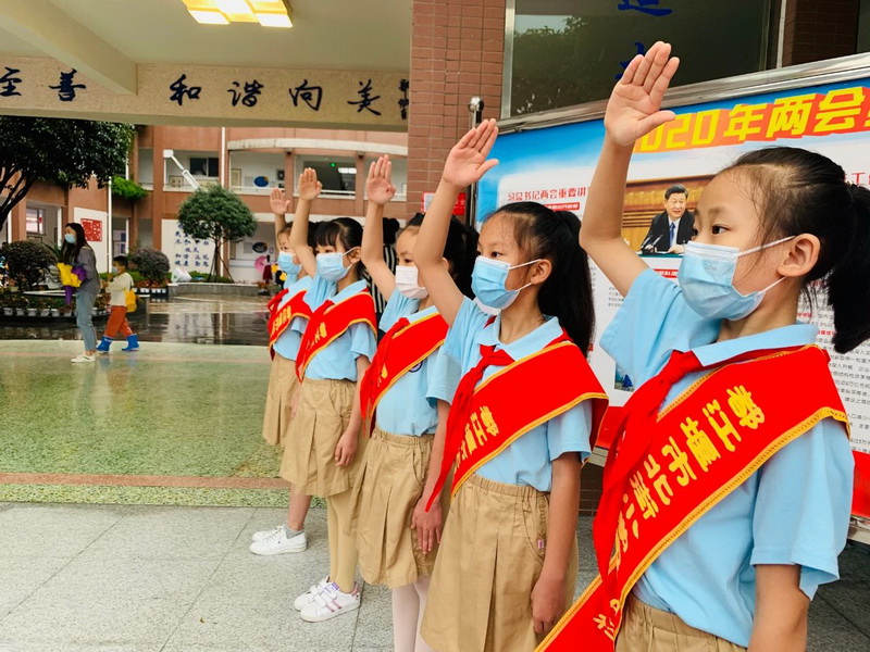 哥哥姐姐们用微笑迎接一年级的小弟弟、小妹妹们。欢迎他(她)们加入我们温暖的大家庭。