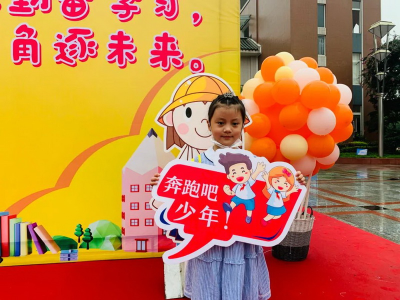 在爸爸妈妈的陪伴下,走进校园,开启了新的征程。Accompanied by parents, I entered the campus and started a new journey.