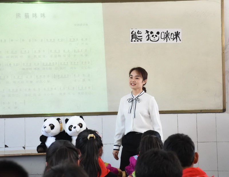 Music teacher Wang Zhen's live teaching "Panda Mimi" evokes historical memories of the protection of giant pandas and expresses love for giant pandas with the beautiful melody accompanied by the children's immature songs.